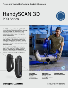 The HandySCAN 3D PRO Series from Creaform delivers professional metrology-grade scanning performance in a fully portable handheld format. Built for demanding engineering applications, the PRO Series allows users to capture accurate 3D measurements of complex parts, assemblies, and surfaces directly in the lab, shop, or classroom environment.
